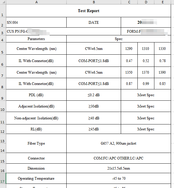 技术优势:该工业级CWDM器件基于自由空间结构,采用富光科技3D光程压缩专利技术,与三端口和AWG器件相比较,具有更高信道空间密度、更优性能指标和超低功率损耗的特性,代表未来无源光器件绿色低碳的发展趋势;品质保证:作为光通信头部企业的认定供应商,富光科技微型无源光器件生产线接受全球主要客户的定期现场稽核,提供周期性可靠性验证数据文件。服务优势:提供通道顺序、波长配置和插损分布等深度定制服务;提供免费光路仿真、可靠性验证和容差分析的售前服务;利用生产过程中存储的底层数据为客户的产品部署提供强有力的售后支持。